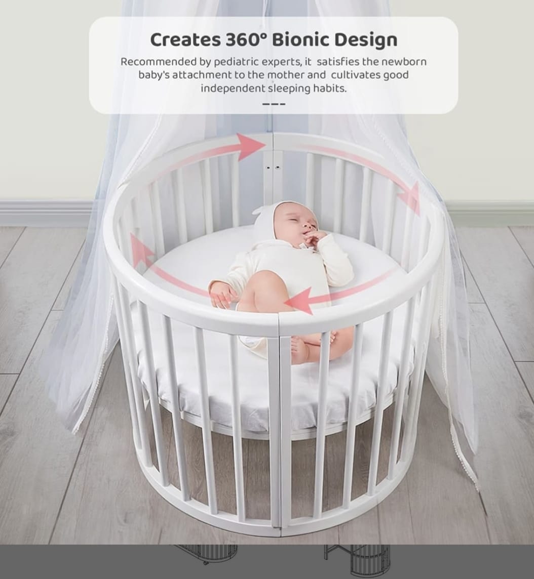 سرير بيضوي أبيض 120*60 عدة مستويات , ويمكن تحويله إلى دائري