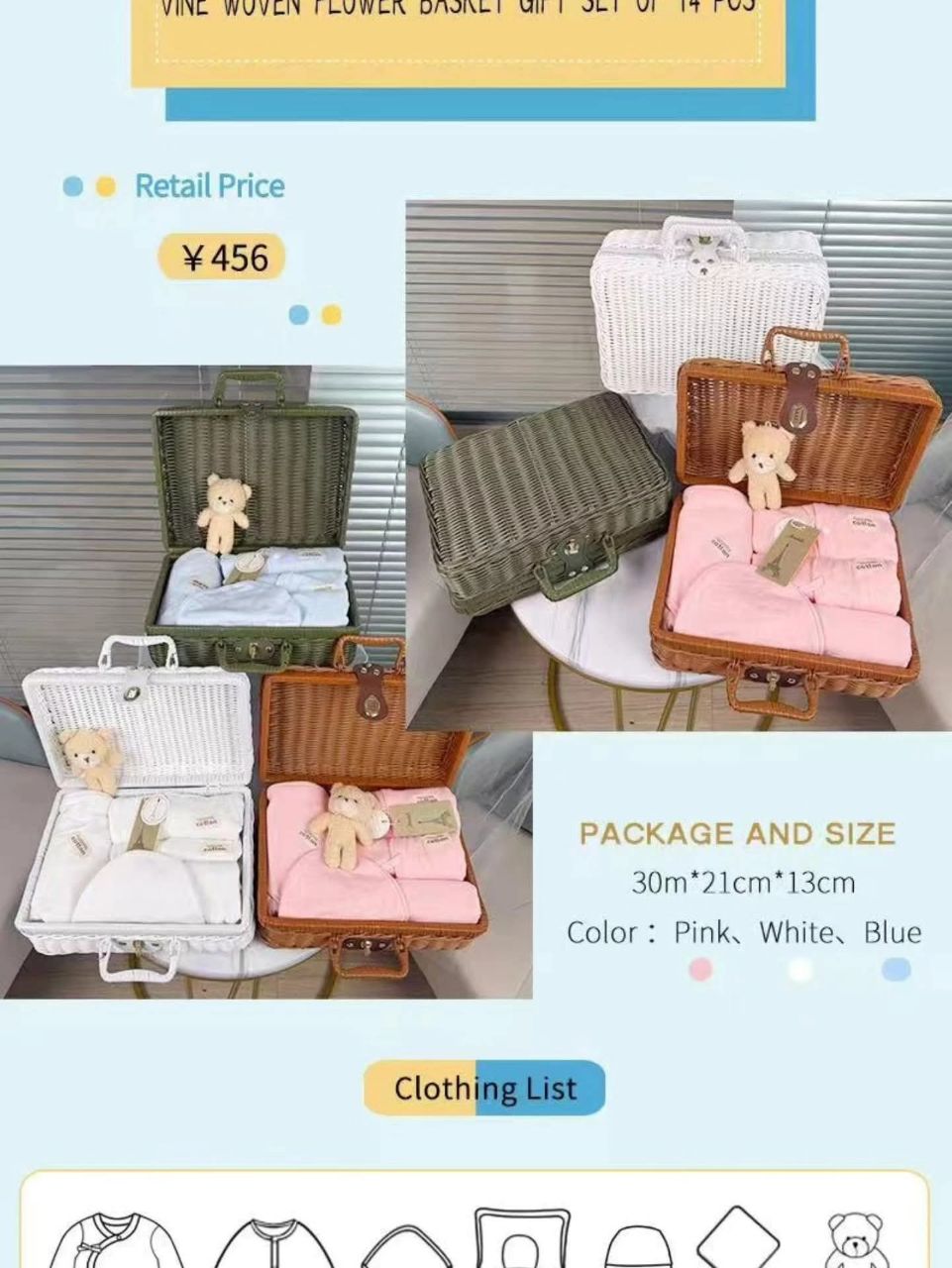 حقيبة ملابس من 14 قطعة من القطن